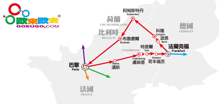 ¨C¶g¤@/¥|¥Xµo - ªkÄõ§JºÖ Frankfurt » ªi®¦ Bonn » ¬ì¶© Cologne » ªü©i´µ¯S¤¦ Amsterdam¡]500¤½¨½¡^