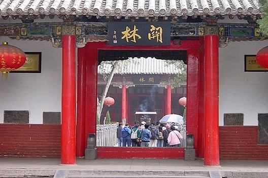 【關林】俗稱關帝廟。相傳爲埋葬三國蜀將關羽首級之處,因與孔聖文武並祀,故稱關林。