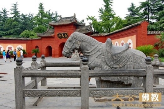 【白馬寺】位於河南省洛陽老城以東21公里處,北依邙山,南臨洛河,創建於東漢永平十一年(公元68年),是佛教傳入中國後興建的第一座寺院,白馬寺建立之後,中國「僧院」便泛稱為「寺」,白馬寺也因此被認為是中國佛教的發源地,有中國佛教的「祖庭」和「釋源」之稱。寺內保存了大量元代夾紵乾漆造像如三世佛、二天將、十八羅漢等,彌足珍貴。1961年,白馬寺被中華人民共和國國務院公布為第一批全國重點文物保護單位之一。目前,白馬寺占地面積約為200畝,根據白馬寺佛教文化園區規劃,白馬寺的面積將達到1300畝,成為中國面積最大的佛寺。